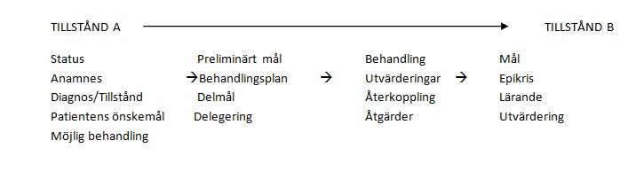 Stegen bygger på en patientbehandling från ett tillstånd A, mot målet Tillstånd B en frisk patient, dessa steg känner de flesta till och det är dessa steg som lärs ut på de olika tandvårdsprogrammen.